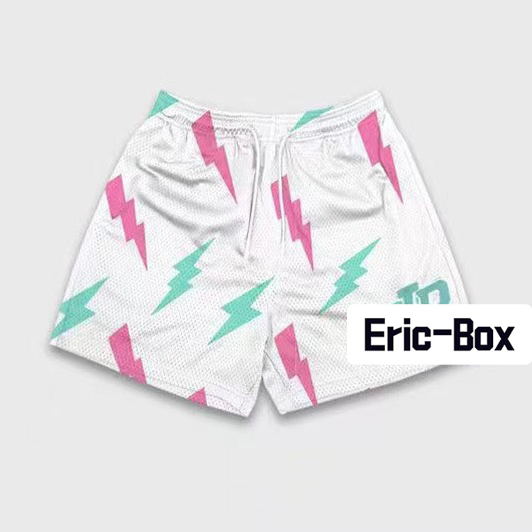 Lightning Bolt Print White Mesh Shorts